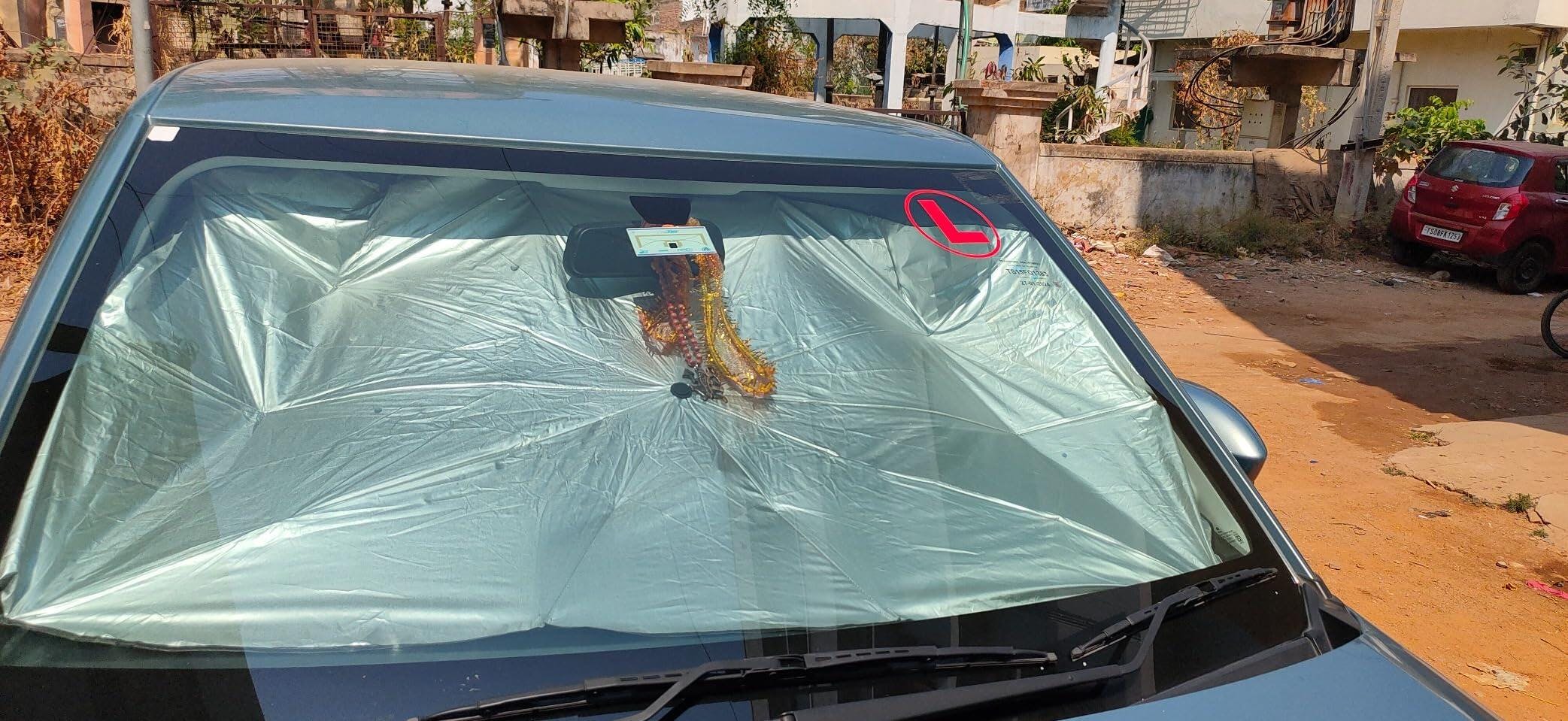 The Car Umbrella: Car Sun Shade is a versatile product that can easily fit the front windshield of most vehicles, including sedans, trucks, SUVs, RVs, minivans, and vans.